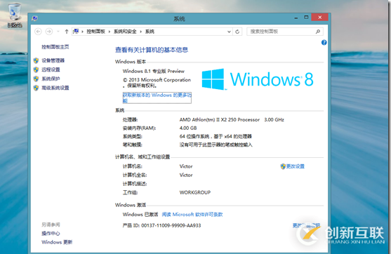 在電腦信息中,依舊顯示為Windows 8的徽標(biāo),所以這個(gè)版本很可能類似于之前系統(tǒng)的SP1.此外,取消了對電腦硬件評分的功能,對很多人來說,以后又缺少了一條得(zhuang)瑟(bi---)的資本。