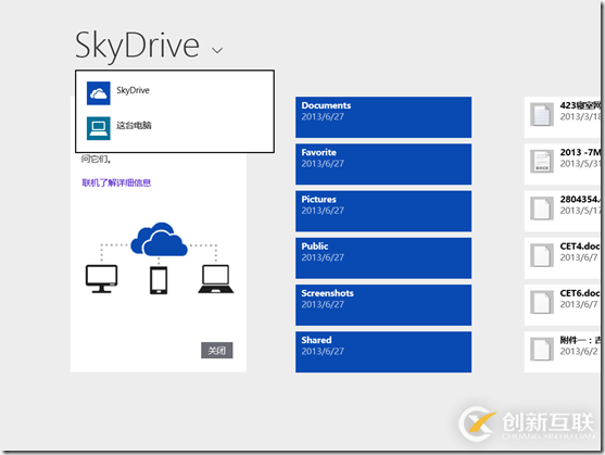 在SkyDrive應(yīng)用方面,看似沒有很大的改變。可是卻在下拉菜單中看到了“這臺電腦”的字樣,在一定程度上其可以當(dāng)作Modern版本的File Manager。