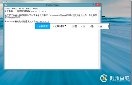 最后,想說的是微軟拼音輸入法的又一次進(jìn)步。在Windows 8.1的輸入法中,解決了在中文狀態(tài)下輸入英文單詞不能插入連字符等符號的問題(如輸入vicky-vic只能出現(xiàn)vickyvic),而且還加入了云端詞庫,大大提高了輸入的準(zhǔn)確性。