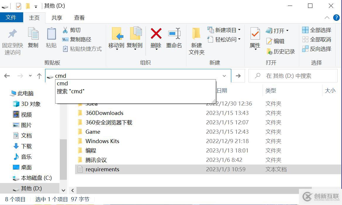 pygame==2.1.2我們?cè)诋?dāng)前目錄上的搜索框中輸入 “cmd”,在按下 “Enter”