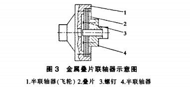 金屬疊片聯軸器如圖3所示。金屬疊片聯軸器除了具有含橡膠元件撓性聯軸器的優(yōu)點外,還具有壽命長等優(yōu)點。因此特別適合于遠洋船舶等重要領域的發(fā)電機組使用。這種聯軸器,具有良好的社會經濟價值和廣泛的工程應用前景,是柴油發(fā)電機聯軸器的發(fā)展趨勢。