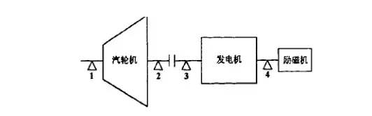 某臺(tái)60MW汽輪發(fā)電機(jī)組軸系由汽輪機(jī)、發(fā)電機(jī)、勵(lì)磁機(jī)組成,勵(lì)磁機(jī)為懸臂結(jié)構(gòu),如圖1所示。