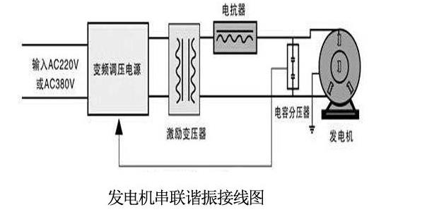 因大型發(fā)電機(jī)容量太大,交流耐壓試驗(yàn)中所需試驗(yàn)變壓器的要求也更高,所以無(wú)法采用傳統(tǒng)的試驗(yàn)方法。對(duì)于這種大容量的電氣設(shè)備打耐壓,我們應(yīng)使用發(fā)電機(jī)串聯(lián)諧振裝置。如下圖所示,該裝置主要針對(duì)單機(jī)容量在250MW及以下水力發(fā)電機(jī)的交流耐壓試驗(yàn)設(shè)計(jì)制造。