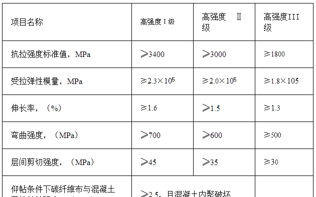 3.碳纖維彈性模量及拉應(yīng)變設(shè)計值