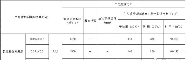 2)根據(jù)現(xiàn)行規(guī)范《建筑結(jié)構(gòu)加固工程施工質(zhì)量驗收規(guī)范》GB50550-2010的規(guī)定,灌縫膠的混合后初黏度應(yīng)符合下表2要求。