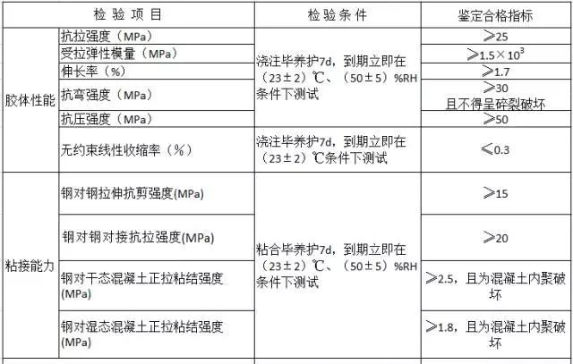 1)根據(jù)現(xiàn)行規(guī)范《工程結(jié)構(gòu)加固材料安全性鑒定技術(shù)規(guī)范》GB50728-2011的規(guī)定,灌縫膠的性能應(yīng)符合下表1的要求。
