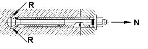 而錨栓允許的破壞形式有:錨栓鋼材破壞和混凝土錐體破壞。