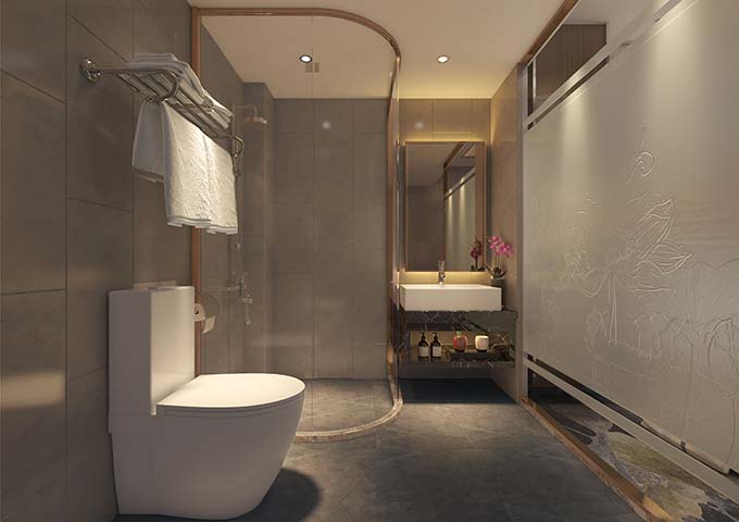 衛(wèi)生間在飯店的客房中不斷占領(lǐng)著十分重要的位置。先進(jìn)的設(shè)備設(shè)備能夠使男女 商務(wù)客人房間的洗漱間設(shè)備和功用完整不同,如女士商務(wù)客人的房間能夠有小巧的浴盆能夠洗牛奶浴、花瓣浴,并有洗私處的專用設(shè)備等。洗漱間的墻上瓷磚的顏色和圖案也能夠營(yíng)形成不同作風(fēng),如寬廣草原,古典深林,童話世界等等。洗面池亦能夠一改以前的橢圓外型,能夠采用如今較盛行的突出臺(tái)面的個(gè)性設(shè)計(jì),如采用碗型、盤(pán)型、荷花型,質(zhì)材也能夠采用陶瓷或塑料等。