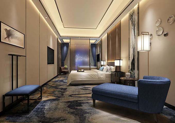 現(xiàn)代精品酒店室內(nèi)的家具、燈具和陳列品的選擇,要與整體空間的設(shè)計(jì)主題相一致。家具應(yīng)依照人體一定姿態(tài)下的肌肉、骨骼結(jié)構(gòu)來(lái)進(jìn)行選擇,增加人體舒適度,從而減少肌肉疲勞。燈光設(shè)計(jì)發(fā)展方向大致分為兩種特點(diǎn):