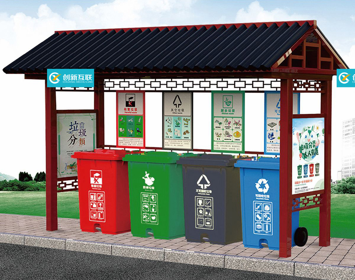 重慶垃圾分類亭定制加工四分類垃圾亭廣告欄 重慶市環(huán)衛(wèi)設(shè)施制造廠家提供重慶垃圾分類亭廠家直銷重慶垃圾分類亭,垃圾分類宣傳亭,分類垃圾收集崗?fù)ぜ庸ね瑫r(shí)提供配套的塑料垃圾桶,移動(dòng)垃圾桶,四分類垃圾桶歡迎選購。呼吁大家樹立“垃圾分類從我做起”的理念,在景區(qū)游覽時(shí),積極參與踐行,養(yǎng)成垃圾分類、勤儉節(jié)約和物盡其用的文明生活習(xí)慣。請(qǐng)您將游園過程中產(chǎn)生的生活垃圾正確分類,并按照公園設(shè)置的垃圾箱分類投放。做好垃圾分類,保護(hù)環(huán)境,保護(hù)公園環(huán)境,是我們每一名市民游客的責(zé)任,讓我們攜起手來,共同參與垃圾分類,養(yǎng)成綠色低碳的生活習(xí)慣,一起來建設(shè)綠色美好的家園!垃圾分類崗?fù)づ涮桌湓O(shè)計(jì)定制垃圾分類宣傳崗?fù)ぽ^傳統(tǒng)分類垃圾箱的優(yōu)勢(shì)簡(jiǎn)析 ①更整潔。外觀設(shè)計(jì)增加遮擋裝置,有效防止垃圾因日曬雨淋之后對(duì)環(huán)境衛(wèi)生的影響; ②更便捷。增設(shè)的垃圾分類指示牌清晰且直觀的注釋垃圾類別,幫助居民快速判斷,分類垃圾箱的有效性; ③更主動(dòng)。原有分類垃圾箱苦于居民的分類意識(shí)薄弱,垃圾分類宣傳崗?fù)げ捎寐曇簟嬅嫔踔羷?dòng)畫等形式主動(dòng)傳播,更利于居民的意識(shí)接收。 ④更低成本。從功能設(shè)置與外觀設(shè)計(jì)而言,在保證功能創(chuàng)新的同時(shí),與智能分類垃圾箱相比,其造價(jià)更加低廉。
