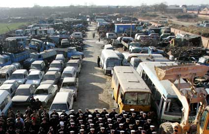 ”陳先生說,汽車回收后,將會依次進行拆解分割,然后分類進行回收。除了報廢汽車發(fā)動機、方向機、變速器、前后橋、車架(以下統(tǒng)稱“五大總成”),按照法律規(guī)定拆解完畢直接送至煉鋼廠集中熔解銷毀外,其他部件如車燈、輪胎、玻璃等小零件則可以正常拆卸回收利用。