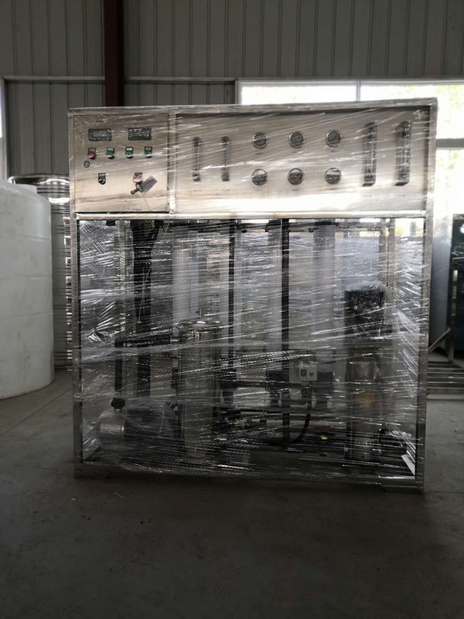 反滲透系統(tǒng) 反滲透是最精密的膜法液體分離技術(shù),它能阻擋所有的溶解性鹽及分子量大于100的有機(jī)物,但允許水分子透過。反滲透膜是用特殊材料和加工方法制成的具有半透性能的膜,它能夠在外界壓力作用需下使水溶液中的某些組分選擇性透過,從而達(dá)到淡化,凈化或濃縮分離的目的,醋酸纖維素分滲透膜脫鹽率一般可大于95%,反滲透復(fù)合膜脫鹽率一般大于98%。由于反滲透系統(tǒng)的運行費用低,環(huán)境效益高,基本解決了再生酸堿污染環(huán)境的問題。 EDI系統(tǒng) EDI技術(shù)是在電滲析技術(shù)上發(fā)展起來的,利用選擇性膜和離子交換樹脂組成填充物生產(chǎn)高純水的技術(shù)。最常見的EDI系統(tǒng)設(shè)備由一系列模塊并聯(lián)組裝而成,每個模塊由淡水室,濃水室和極水室組成,淡水室內(nèi)填充混合離子交換樹脂,濃,淡水室之間設(shè)置有選擇性的離子交換膜,淡水室中的陰陽離子在兩端電極作用下不斷定向移動,通過陰陽離子膜進(jìn)入濃水室,水在直流電的作用下分解成氫離子和氫氧根離子,使淡水室中的離子交換樹脂經(jīng)常處于再生狀態(tài),始終有交換容量,而濃水室的濃水不斷排走,從而制得高純水。每個模塊有一定的產(chǎn)水量,一般每小時幾噸。由于EDI系統(tǒng)設(shè)備的樹脂可以在線連續(xù)再生,因此能實現(xiàn)連續(xù)運行。由于EDI系統(tǒng)對進(jìn)水水質(zhì)的要求較高,為確保EDI系統(tǒng)運行正常,一般在EDI系統(tǒng)前面采用兩級反滲透并加裝除碳器。與離子交換相比,EDI系統(tǒng)有以下特點:無需酸堿再生,有利于達(dá)到環(huán)保要求,混床中的樹脂是通過酸堿中的H+和OH-進(jìn)行再生,而EDI系統(tǒng)是通過電將水電離為H+和OH-,從而對樹脂再生;占地面積小,無需備用裝置,無需設(shè)置再生,酸堿儲存,中和設(shè)備;便于實現(xiàn)自動化控制,控制點大大少于混床,操作人數(shù)減少,降低人為操作失誤的可能性,無需酸堿再生的操作;設(shè)備維修,更換方便;運行回收率高,可達(dá)95%,且排放的濃水可回收;產(chǎn)水水質(zhì)穩(wěn)定,產(chǎn)水的電阻率可以達(dá)到10MΩ·cm(25℃)以上。