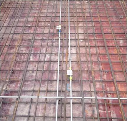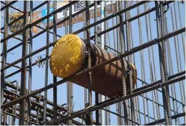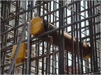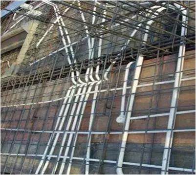 > 2.3套管安裝主體結(jié)構(gòu)鋼筋綁扎好后,按照深化設(shè)計(jì)圖標(biāo)高幾何尺寸找準(zhǔn)位置,然后將剛性防水套管置于鋼筋中進(jìn)行加固。