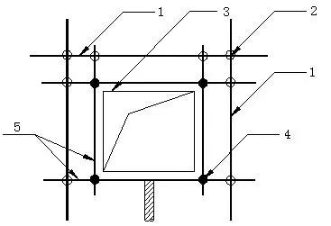 1-主筋 2-12#鉛絲綁扎 3-線盒 4-電焊5-附加鋼筋