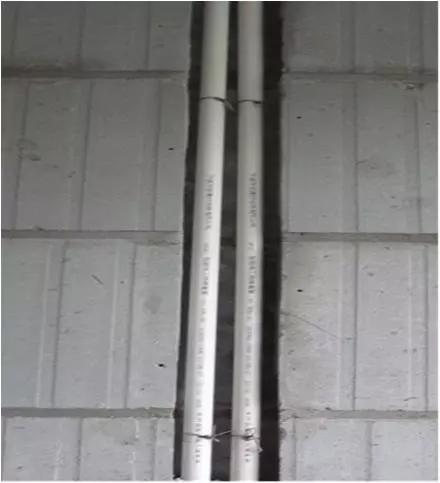 C、PVC線管管口由下往上預(yù)留的長(zhǎng)度控制在80mm以內(nèi),方便以后做成品保護(hù),管口由上往下預(yù)留的長(zhǎng)度應(yīng)控制在100mm以內(nèi),避免以后砌體施工彎斷線管,二次配管時(shí)無(wú)法接駁.