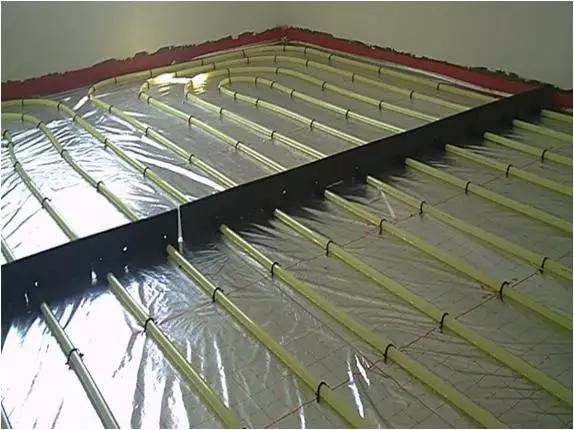 3、輻射供暖地板當(dāng)邊長超過6m或面積超過30 ㎡ 時需設(shè)置伸縮縫,每隔3m左右設(shè)置縱橫向2公分x6公分的高發(fā)泡聚乙烯泡沫板條,板條高度高出地面2公分。