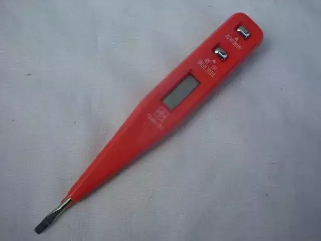 數(shù)字顯示測(cè)電筆:上面分為直接測(cè)量按鈕和感應(yīng)電按鈕。使用時(shí)如果要測(cè)量接觸物體測(cè)量,就用拇指輕輕按住直接測(cè)量按鈕(DIRECT離筆尖最遠(yuǎn)的那個(gè)),金屬筆尖接觸物體測(cè)量;如果想知道物體內(nèi)部或帶絕緣皮電線(xiàn)內(nèi)部是否有電,就用拇指輕觸感應(yīng)按鈕(離筆尖最近的那個(gè)INDUCTANCE),如果測(cè)電筆顯示閃電符號(hào),就說(shuō)明物體內(nèi)部帶電;反之,就不帶電。(數(shù)字測(cè)電筆在使用時(shí)不要同時(shí)把兩個(gè)按鈕都按住,這樣測(cè)量的結(jié)果就不準(zhǔn)確,沒(méi)有參考意義了。)