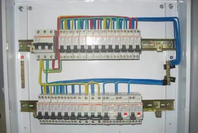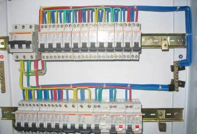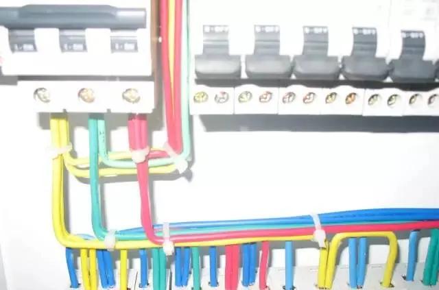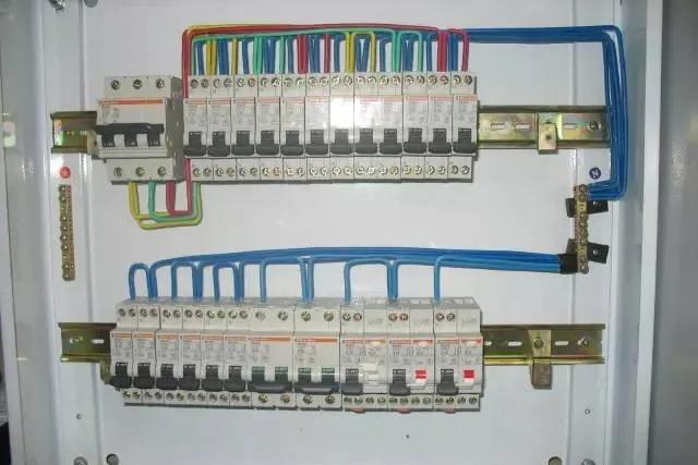 4、箱體內(nèi)總空開與各分空開之間配線一般走左邊,配電箱出線一般走右則。