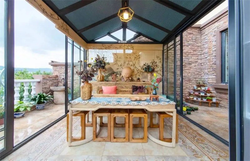 4、陽(yáng)光房排水同樣要做到位,陽(yáng)光房頂部可以做成有角度的斜頂,這樣就能方便雨水自然下落,同時(shí)要做好排水系統(tǒng),測(cè)試好能否影響暴雨臺(tái)風(fēng)天氣,這些細(xì)節(jié)做得好自然后續(xù)就會(huì)減少很多煩惱。