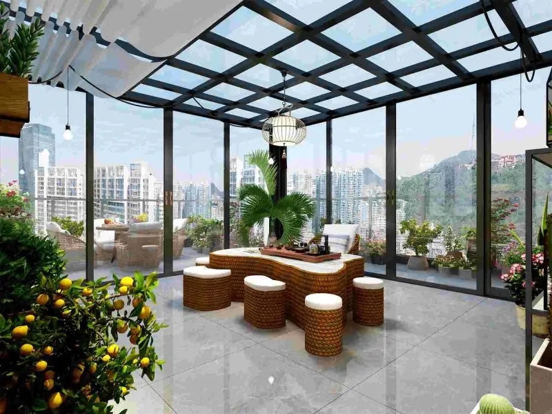除此之外地理位置如果在北方的話冬天一般都會以寒冷干燥為主,因此移動陽光房的玻璃更加講求的是隔熱保溫效果,因此采用雙層或者是多層鋼化中空玻璃會更好一些,同時隔絕室外冷空氣和隔音效果都會大大增強(qiáng),冬暖夏涼的陽光房就是這么誕生的!