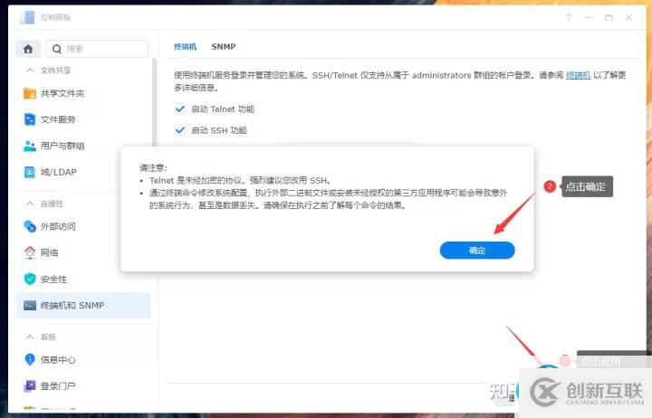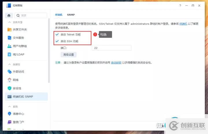 點(diǎn)擊進(jìn)入終端機(jī)和SNMP,勾選啟動(dòng)SSH和Telnet,如圖所示: