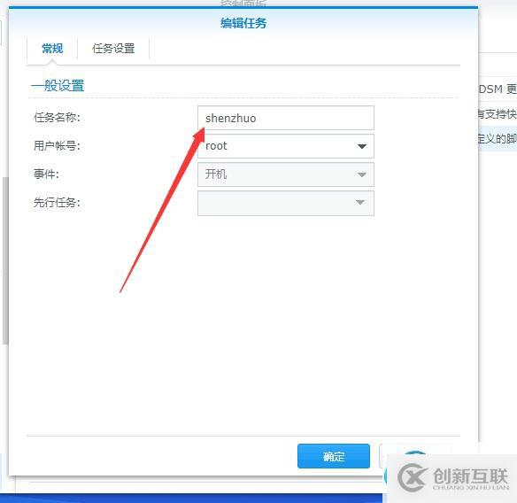 任務(wù)名稱填寫"shenzhuo",用戶賬號(hào)選擇root(重點(diǎn),這里一定要選擇root賬號(hào)),事件默認(rèn)選擇開(kāi)機(jī)