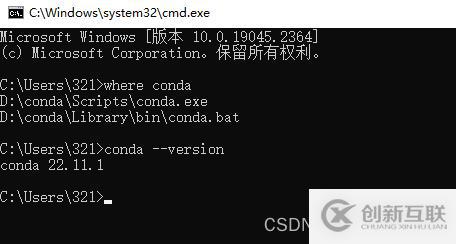 3、測試conda是否配置成功,按win+r快捷鍵輸入cmd打開命令提示符,進(jìn)行下圖所示操作。
