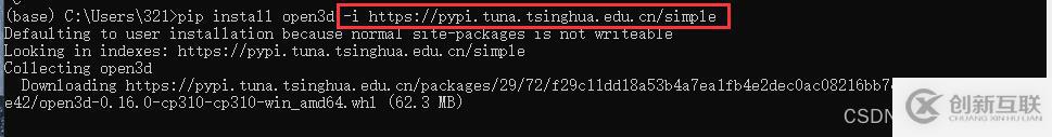4、配置Open3d(Python)版本庫,如果Open3d下載速度有點(diǎn)慢,可以像下面這樣通過指定鏡像源來加速下載(