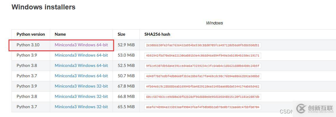 安裝Python的方式有很多種,這里為了方便以及后續(xù)如果想要進(jìn)行深度學(xué)習(xí)的測試,我推薦下載Miniconda或Anaconda軟件進(jìn)行安裝,這樣做很大的一個(gè)好處是可以創(chuàng)建不同的虛擬環(huán)境來滿足我們后續(xù)的需求。官方網(wǎng)址:https://docs.conda.io/en/latest/miniconda.html#windows-installers。