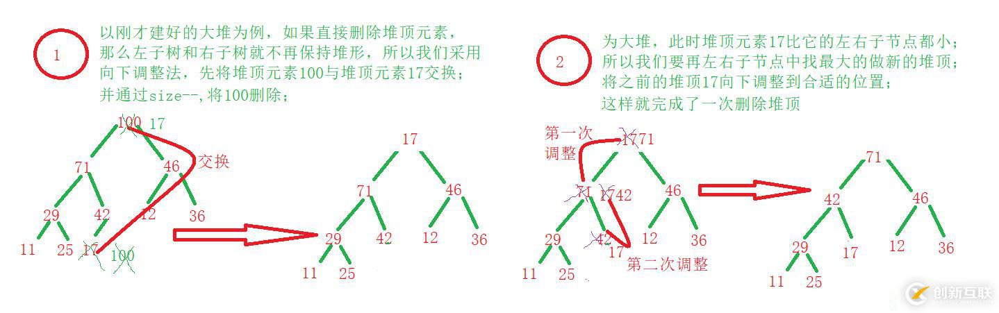 2.3 刪除堆頂元素(向下調(diào)整法):