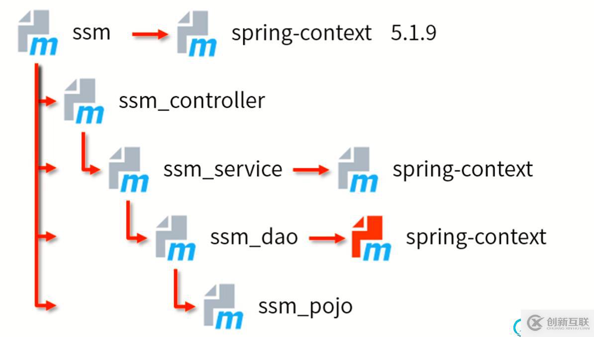 ../ssm_controller ../ssm_service ../ssm_dao ../ssm_pojo 注意事項(xiàng):參與聚合操作的模塊最終執(zhí)行順序與模塊間的依賴關(guān)系有關(guān),與配置順序無關(guān)