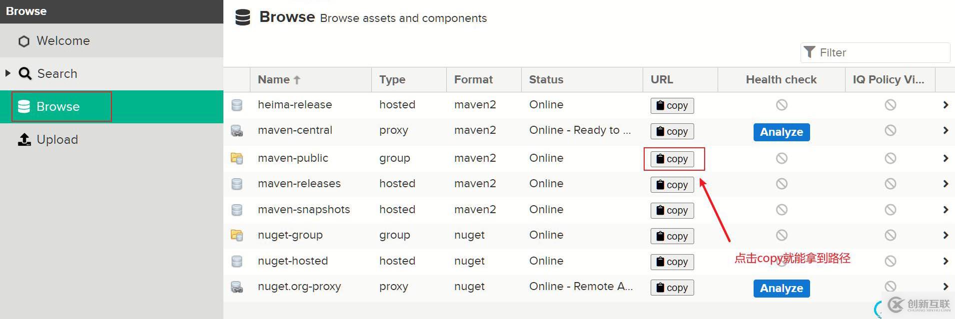 http://maven.aliyun.com/nexus/content/groups/public/ central nexus-heima http://localhost:8081/repository/maven-public/ * **自定義的url如何查找:如下圖**