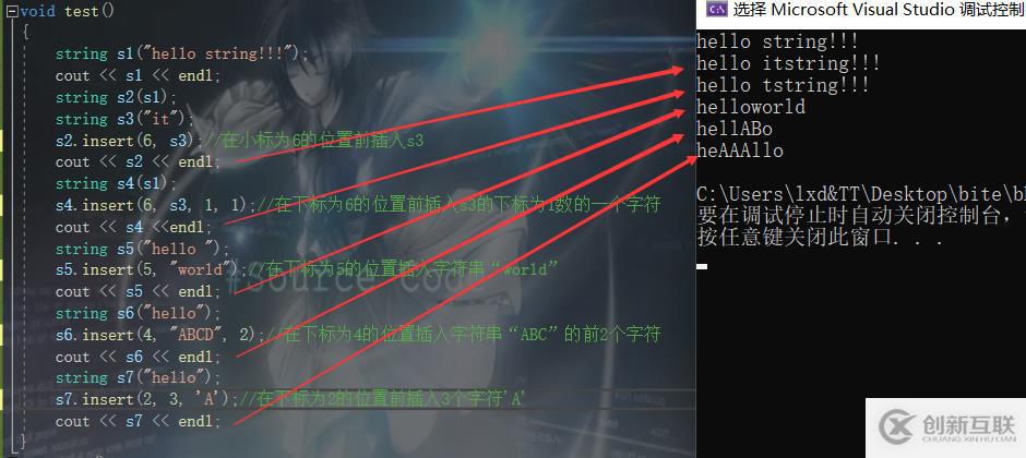 注意:pos是指下標(biāo),從0開始 ,都是在之前插入