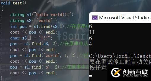 pos = s1.find(s3, 2);//在原串中從小標(biāo)為2的位置找字符串s3的位置,返回下標(biāo)