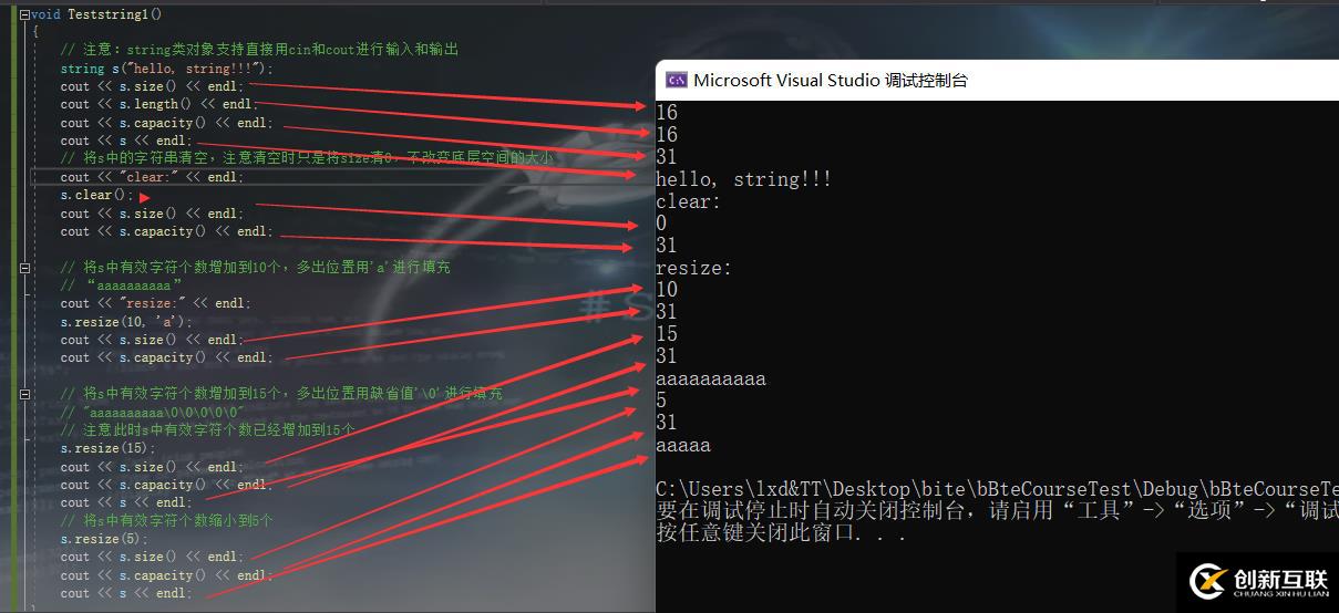 2. clear()只是將string中有效字符清空,不改變底層空間大小。