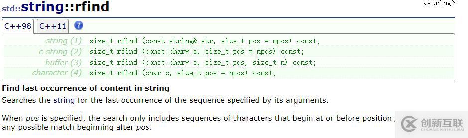 使用形式跟find?一樣,參數(shù)都一樣的,唯一的區(qū)別是find是從前往后找,rfind是從后往前找