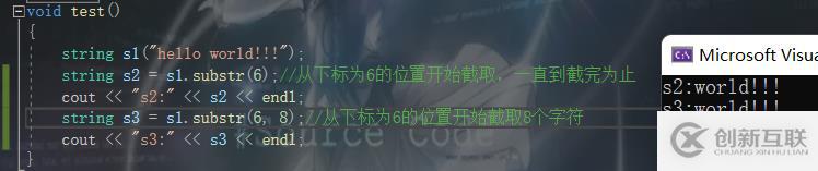 string s2 = s1.substr(6);//從下標(biāo)為6的位置開始截取,一直到截完為止