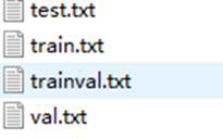 …ImageSets/Main #之后會在Main文件夾內(nèi)自動生成train.txt,val.txt,test.txt和trainval.txt四個文件,存放訓(xùn)練集、驗(yàn)證集、測試集圖片的名字(無后綴.jpg)