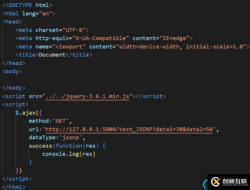 之后通過script標簽發(fā)get請求,問號前是地址,問號后是查詢字符串,查詢字符串需要包含你剛剛定義的函數(shù)名,以及服務需要的參數(shù)