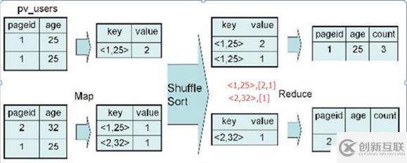 例:SELECT pageid, age, count(1) FROM pv_users GROUP BY pageid, age;