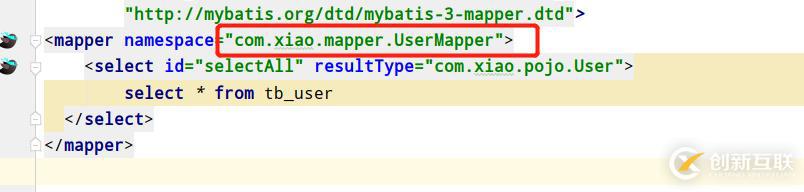 2.設(shè)置SQL映射文件的namespace屬性為Mapper接口全限定名