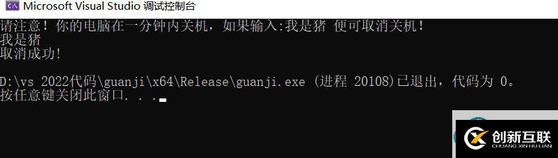printf("請注意!你的電腦在一分鐘內關機,如果輸入:我是豬 便可取消關機!\n");