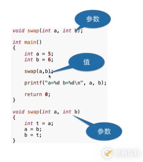 因為雖然主函數(shù)里的“swap(a,b)”把a,b的值傳給了swap函數(shù),但是swap函數(shù)沒有返回任何東西給main(),——不會對main()里的a,b值造成任何影響。