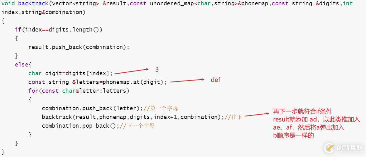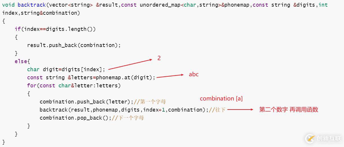 void backtrack(vector&result,const unordered_map&phonemap,const string &digits,int index,string&combination)