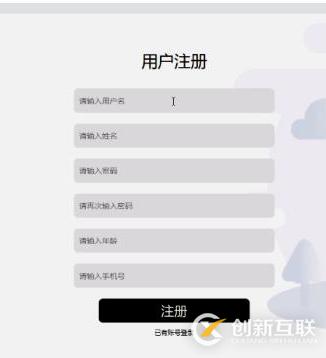 用戶注冊,用戶通過輸入用戶名、姓名、密碼、年齡、手機號等內(nèi)容進行注冊,注冊完通過輸入賬號、密碼進行登錄進入系統(tǒng),如圖5-1所示。