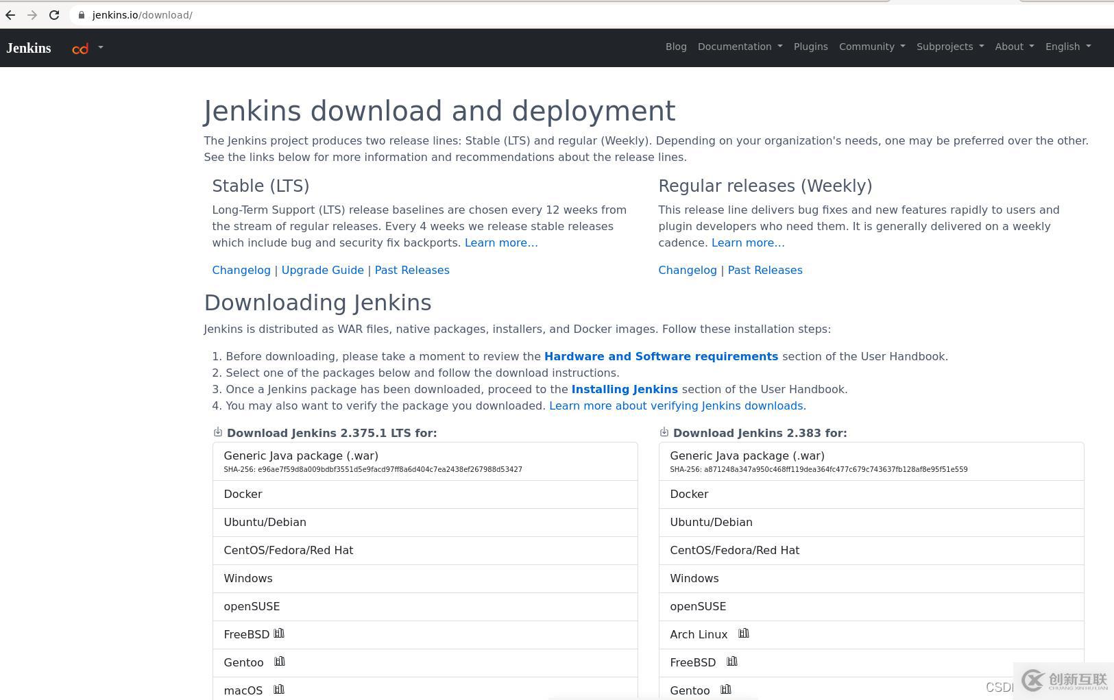 首先,可以到j(luò)enkins官網(wǎng)下載響應的安裝包,