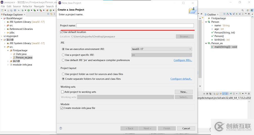 File右鍵新建一個Java project—輸入文件夾名字,用來存放所編寫的程序,點擊finish