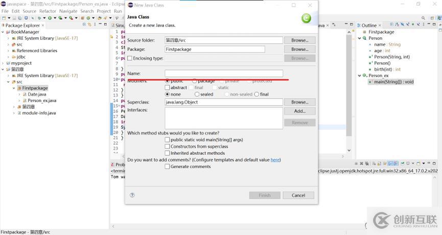 右鍵src新建一個類—輸入類名,下方的public static void main(String args[])可勾選也可以生成代碼后自己敲打,增加自己對代碼的熟練度。