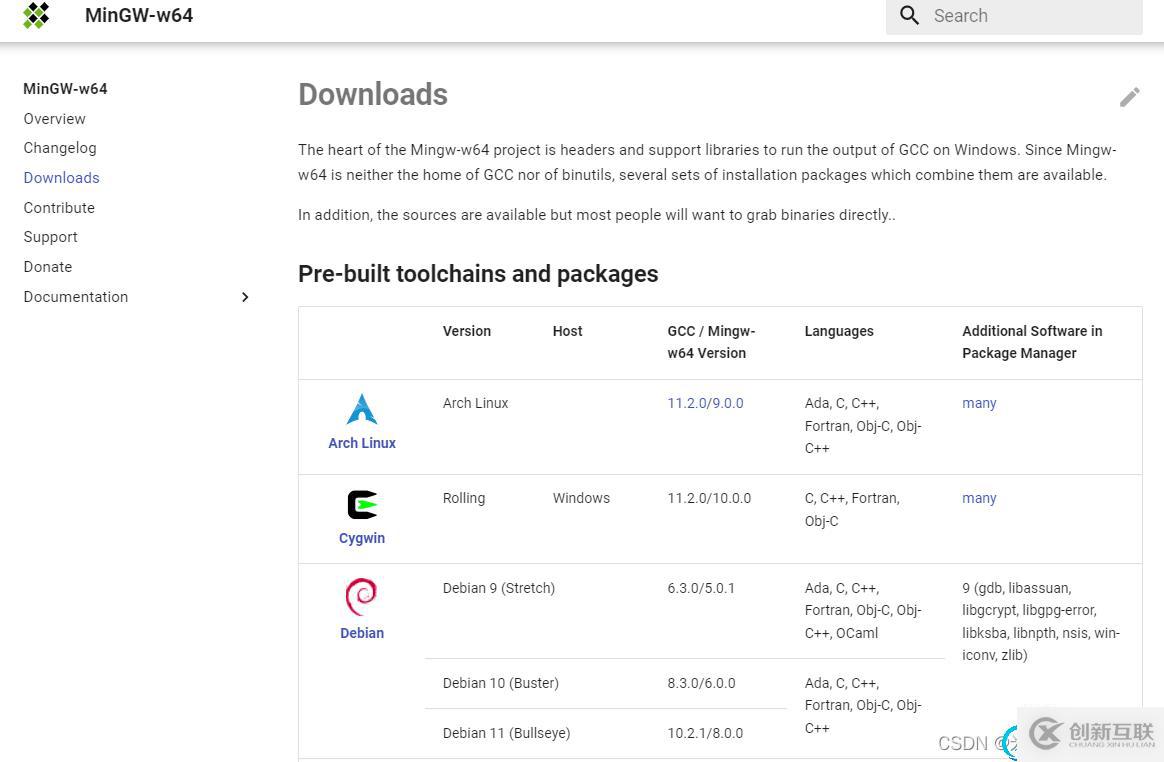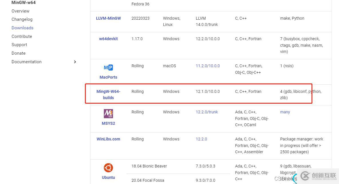 2. 進(jìn)入網(wǎng)站:?https://www.mingw-w64.org/downloads/, 如下圖: