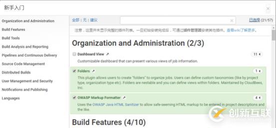 點擊:【選擇插件來安裝】(選擇【安裝推薦的插件】也可以),根據(jù)筆者的經(jīng)驗選擇【選擇插件來安裝】安裝插件順利些,選擇后出現(xiàn)如下默認(rèn)插件安裝界面。
